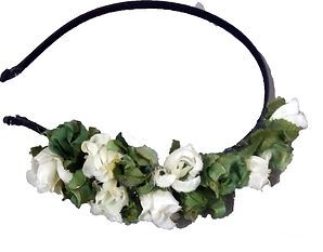 ou coque, enfeitado com flores e fitas.